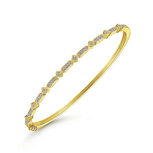 14K Yellow Gold Alternating Geometric Stations Diamond Bangle