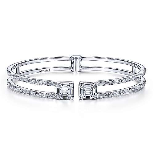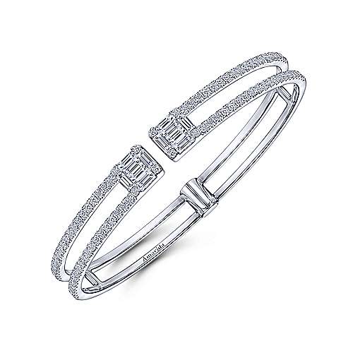 18K White Gold Open Cuff Bracelet with Baguette and Round Diamonds