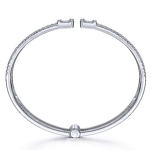 18K White Gold Open Cuff Bracelet with Baguette and Round Diamonds