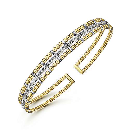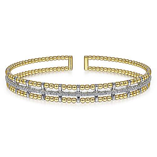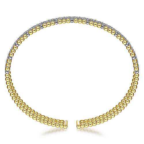 14K Yellow and White Gold Bujukan Bead Cuff Bracelet with Inner Diamond Channel