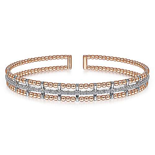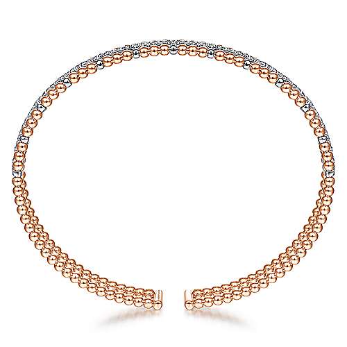 14K White-Rose Gold Bujukan Bead Cuff Bangle with Inner Diamond Channel