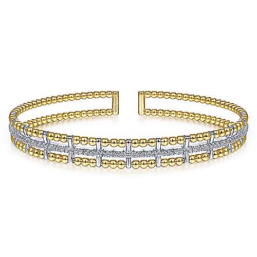 14K Yellow and White Gold Bujukan Bead Cuff Bracelet with Inner Diamond Channel