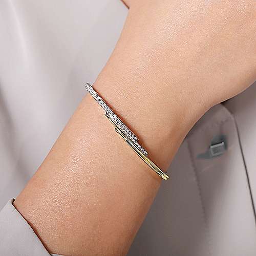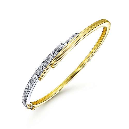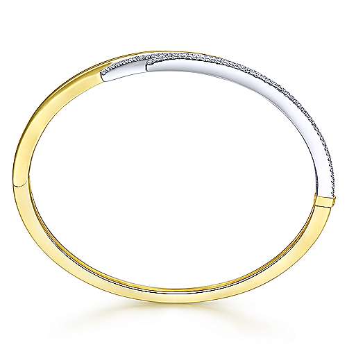 14K Yellow and White Gold Bypass Bangle with Diamonds