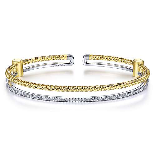 14K Yellow and White Gold Twisted Rope and Diamond Cuff Bracelet