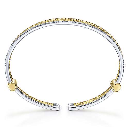 14K Yellow and White Gold Twisted Rope and Diamond Cuff Bracelet