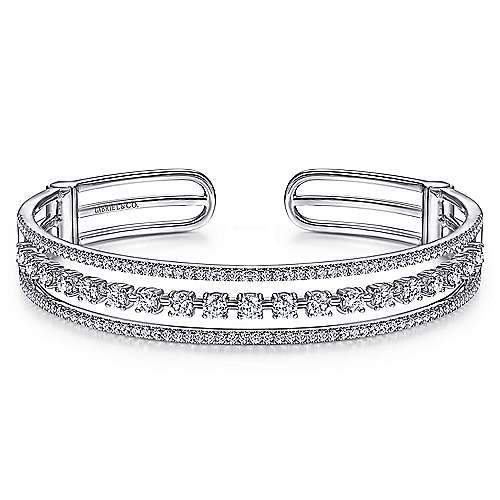 14K White Gold Three Row Diamond Cuff Bracelet