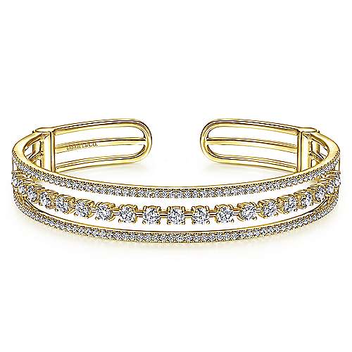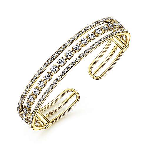 14K Yellow Gold Three Row Diamond Cuff Bracelet