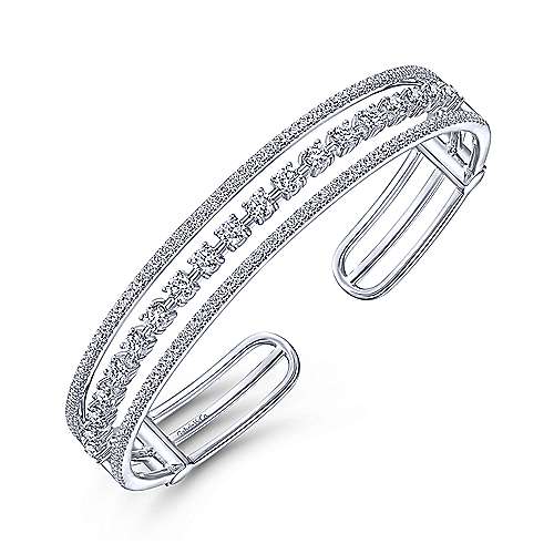 14K White Gold Three Row Diamond Cuff Bracelet