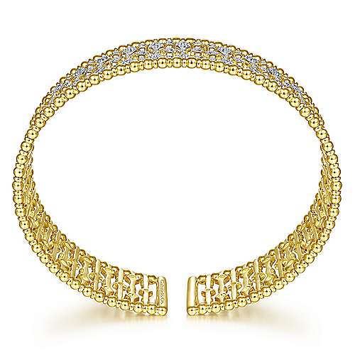 Wide 14K Yellow Gold Cage Cuff Bracelet with Diamond Stations