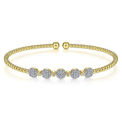 14K Yellow Gold Bujukan Cuff Bracelet with Pavé Diamond Cluster Stations