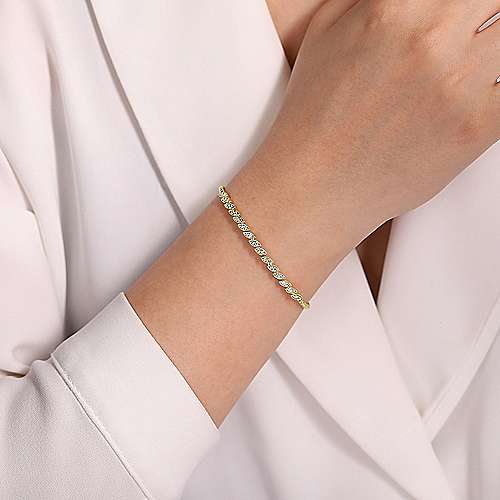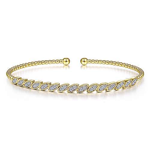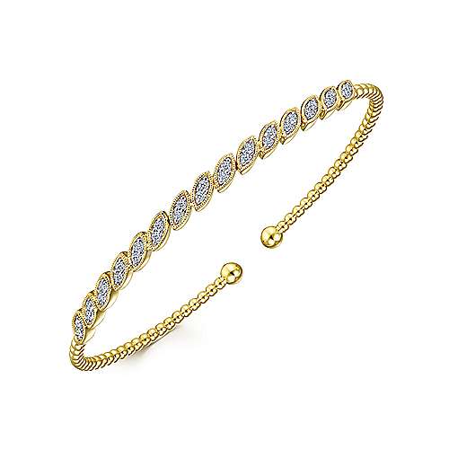 14K Yellow Gold Bujukan Cuff Bracelet with Diamond Filled Marquise Stations