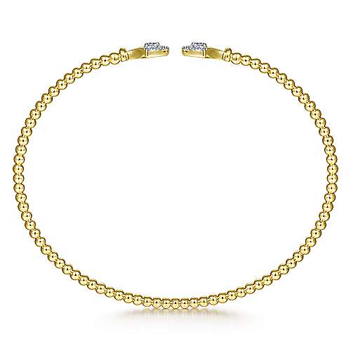 14K Yellow Gold Bujukan Bead Split Cuff with Diamonds