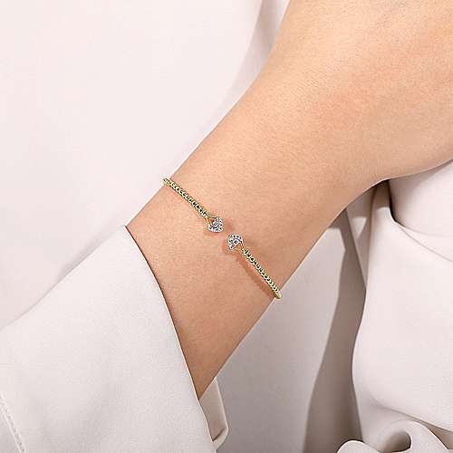 14K Yellow Gold Bujukan Bead Split Cuff with Diamonds