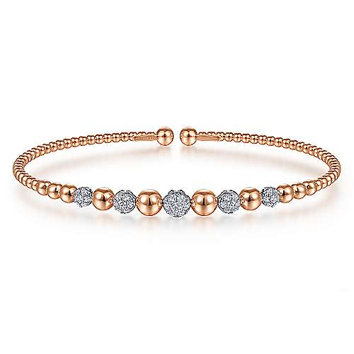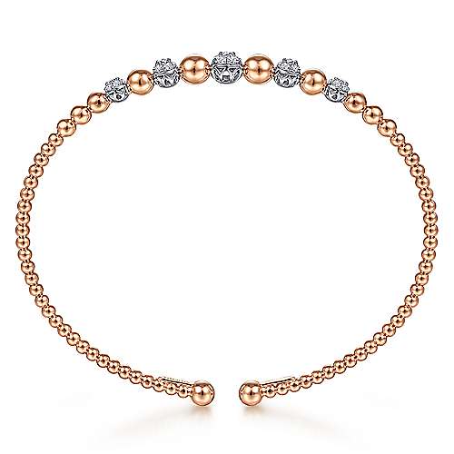14K White-Rose Gold Bujukan Bead Cuff Bracelet with Pavé Diamond Stations