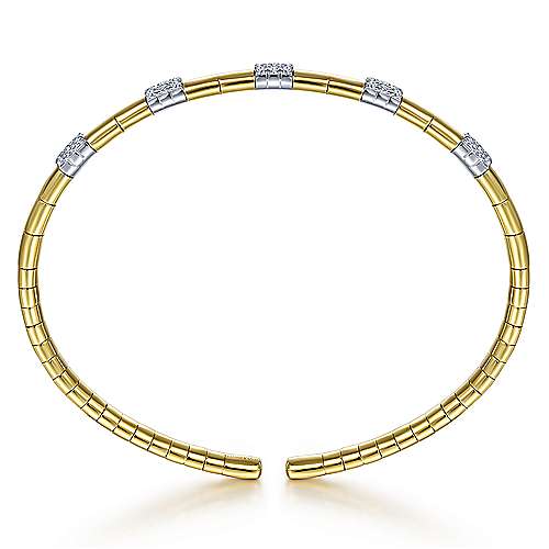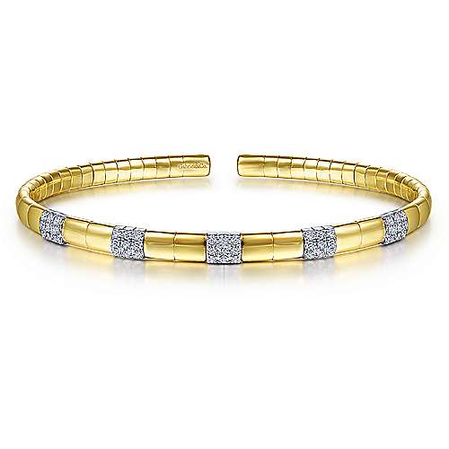 14K Yellow Gold Cuff Bracelet with Pavé Diamond Stations