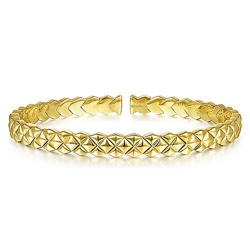 14K Yellow Gold Quilt Pattern Cuff Bracelet