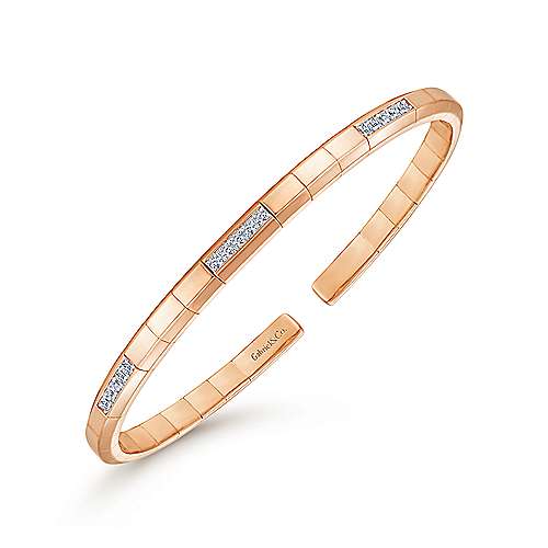 14K Rose Gold Cuff Bracelet with Diamond Pavé Stations