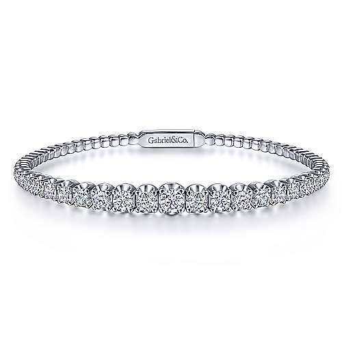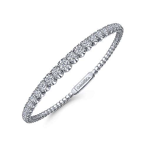 14K White Gold Graduating Diamond Bangle