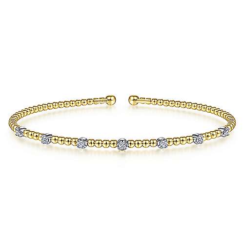 14K White-Yellow Gold Bujukan Bead Cuff Bracelet with Diamond Stations