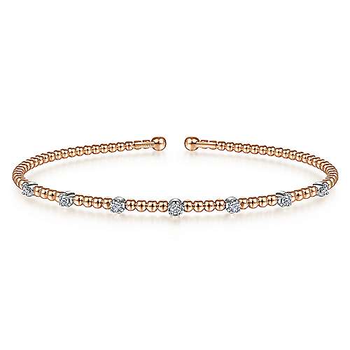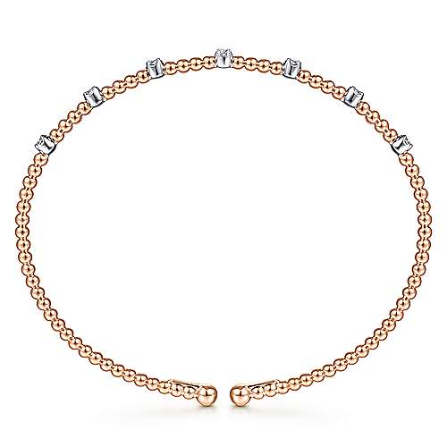 14K White-Rose Gold Bujukan Bead Cuff Bracelet with Diamond Stations