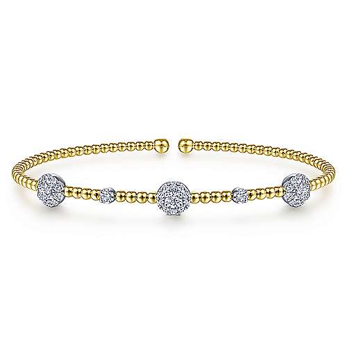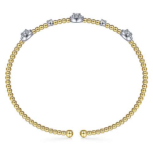 14K White-Yellow Gold Bujukan Bead Cuff Bracelet with Diamond Cluster Stations
