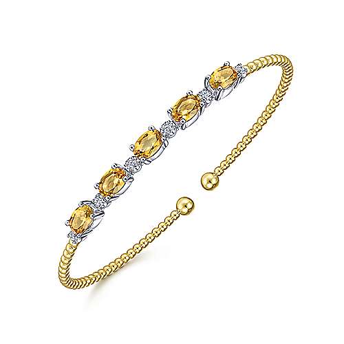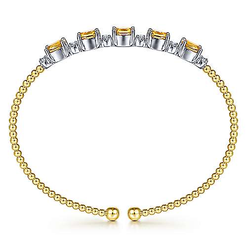 14K White-Yellow Gold Bujukan Bead Cuff Bracelet with Citrine and Diamond Stations