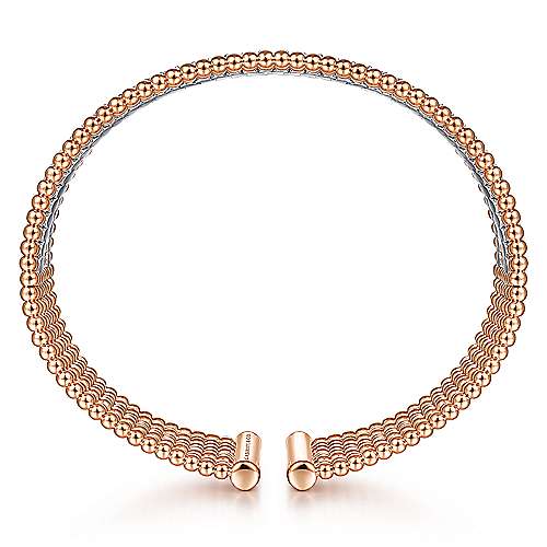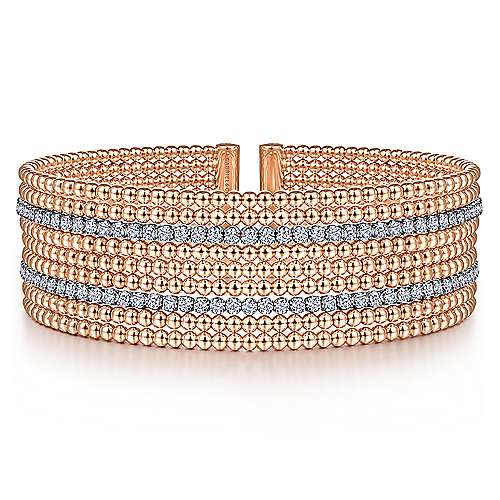 14K White-Rose Gold Bujukan Bead Cuff Bracelet with Diamond Channels