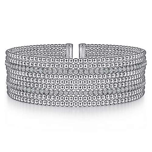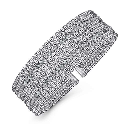 14K White Gold Bujukan Bead Cuff Bracelet with Diamond Channels