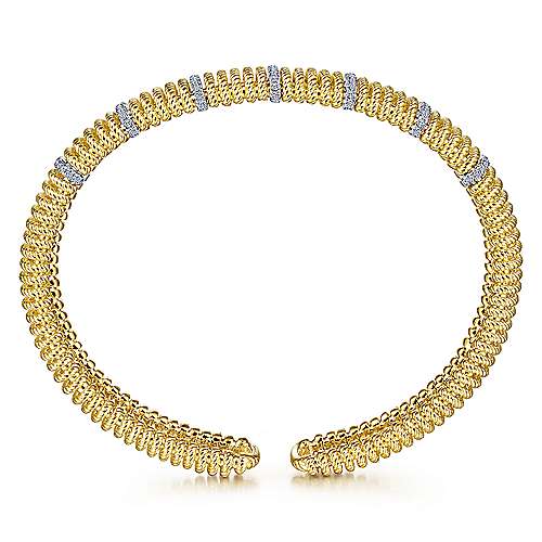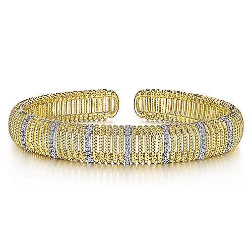 14K White-Yellow Gold Twisted Rope Cuff Bracelet with Diamond Stations