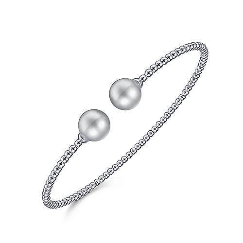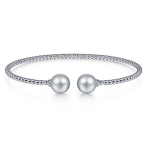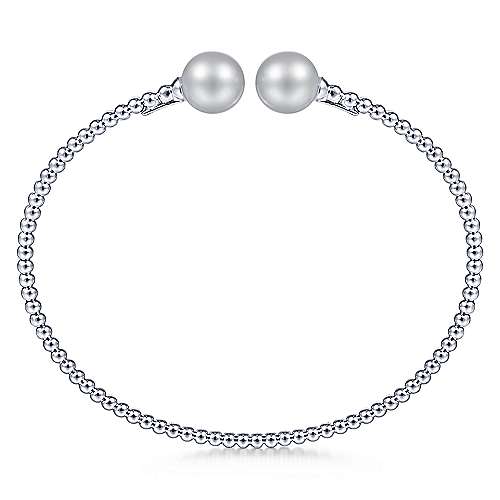 14K White Gold Bujukan Bead Split Cuff Bracelet with Grey Pearls