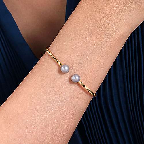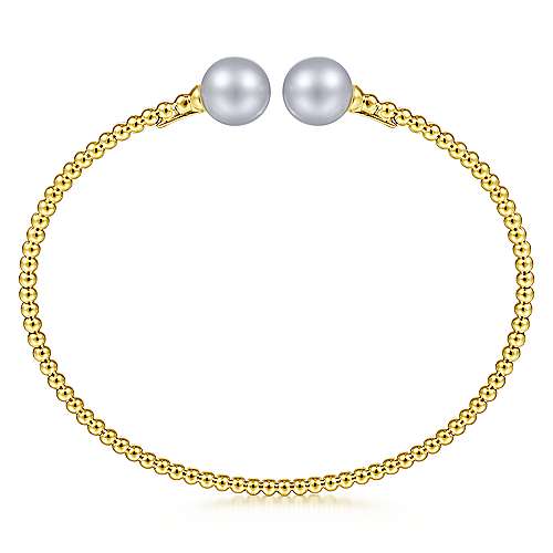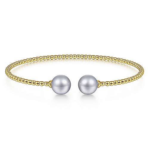 14K Yellow Gold Bujukan Bead Split Cuff Bracelet with Grey Pearls