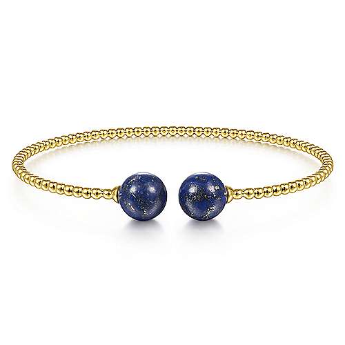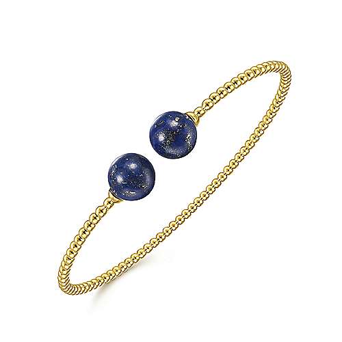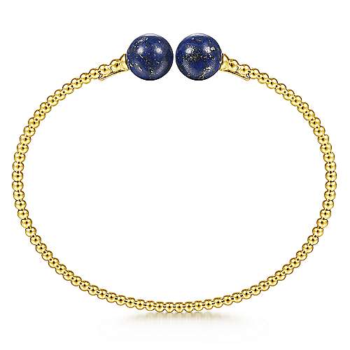 14K Yellow Gold Bujukan Bead Split Cuff Bracelet with Lapis Beads