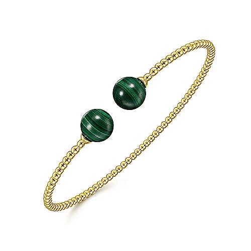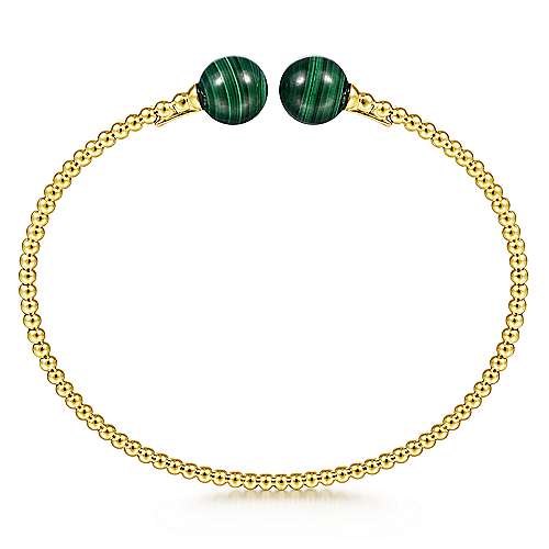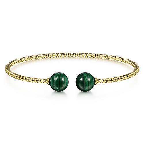 14K Yellow Gold Bujukan Bead Split Cuff Bracelet with Malachite Beads