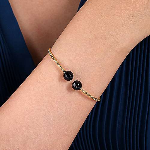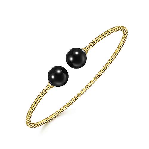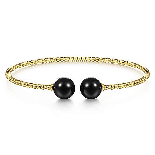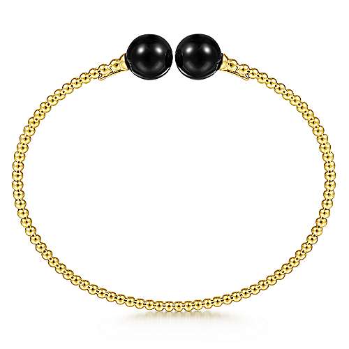 14K Yellow Gold Bujukan Bead Split Cuff Bracelet with Onyx Beads