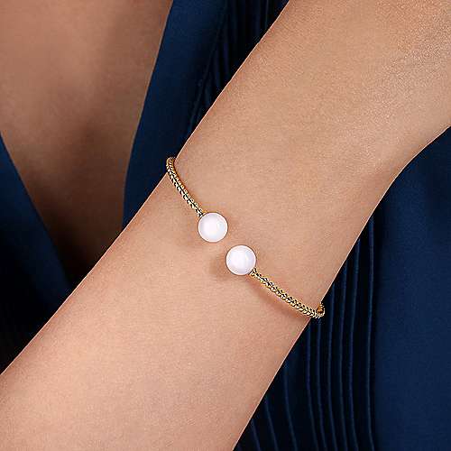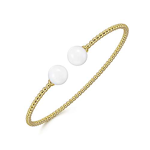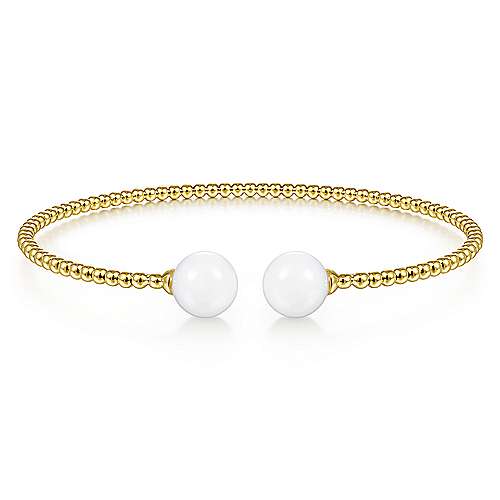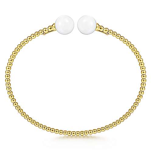 14K Yellow Gold Bujukan Bead Split Cuff Bracelet with Yellow Agate Beads