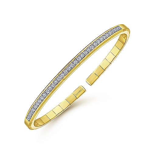 14K Yellow Gold Cuff Bracelet with Diamond Inner Channel