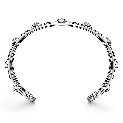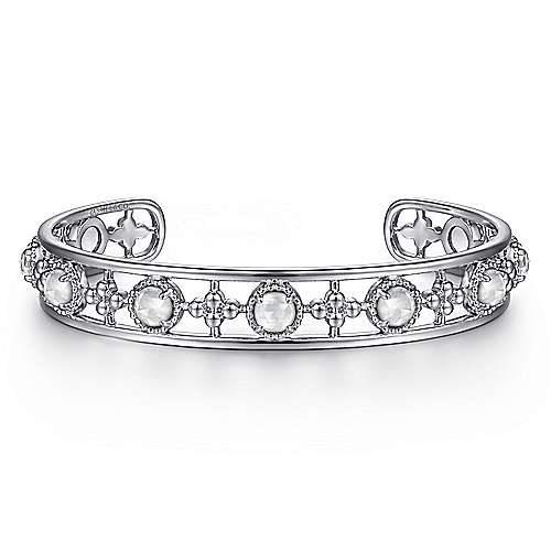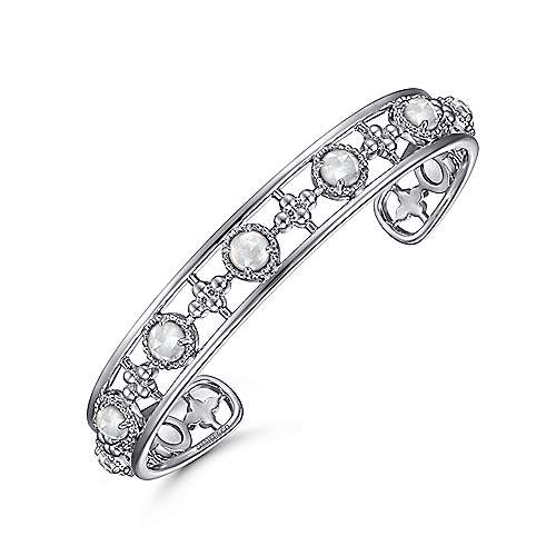 925 Sterling Silver Rock Crystal and White MOP Station Bangle