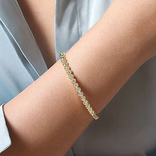 14K Yellow Gold Diamond Demure Fashion Bangle