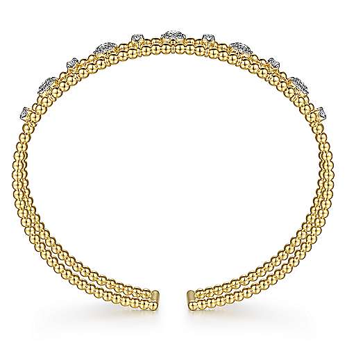 14K Yellow Gold Bujukan Bead Cuff Bracelet with Diamond Cluster and Bezel Connectors