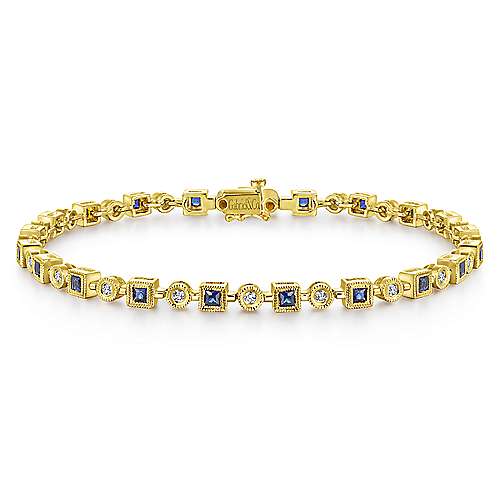 14K Yellow Gold Geometric Diamond and Sapphire Tennis Bracelet