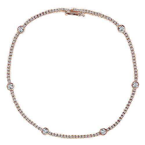 14K Rose Gold Diamond Tennis Bracelet with Bezel Set Diamond Stations