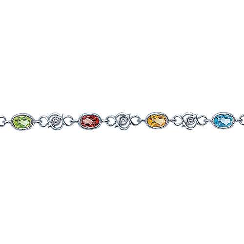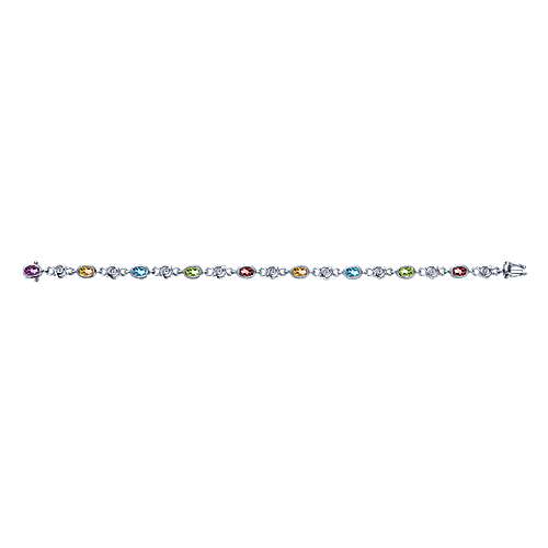 14K White Gold Multi Oval Color Stone Tennis Bracelet