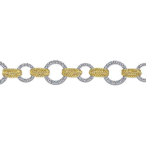 14K Yellow and White Gold Bracelet with Rope Design and Diamonds