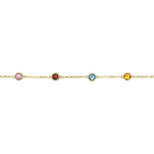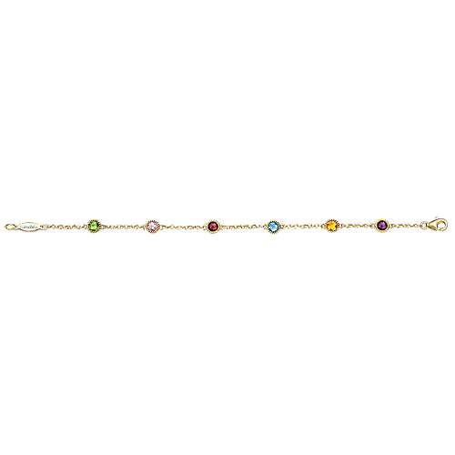 14K Yellow Gold Chain Bracelet with Multi Color Stone Stations