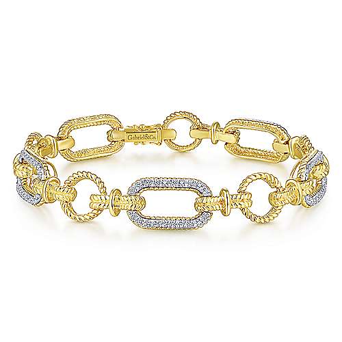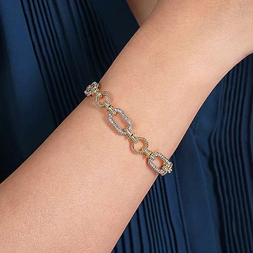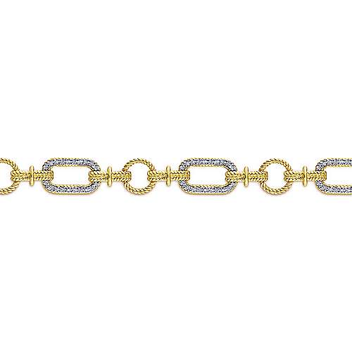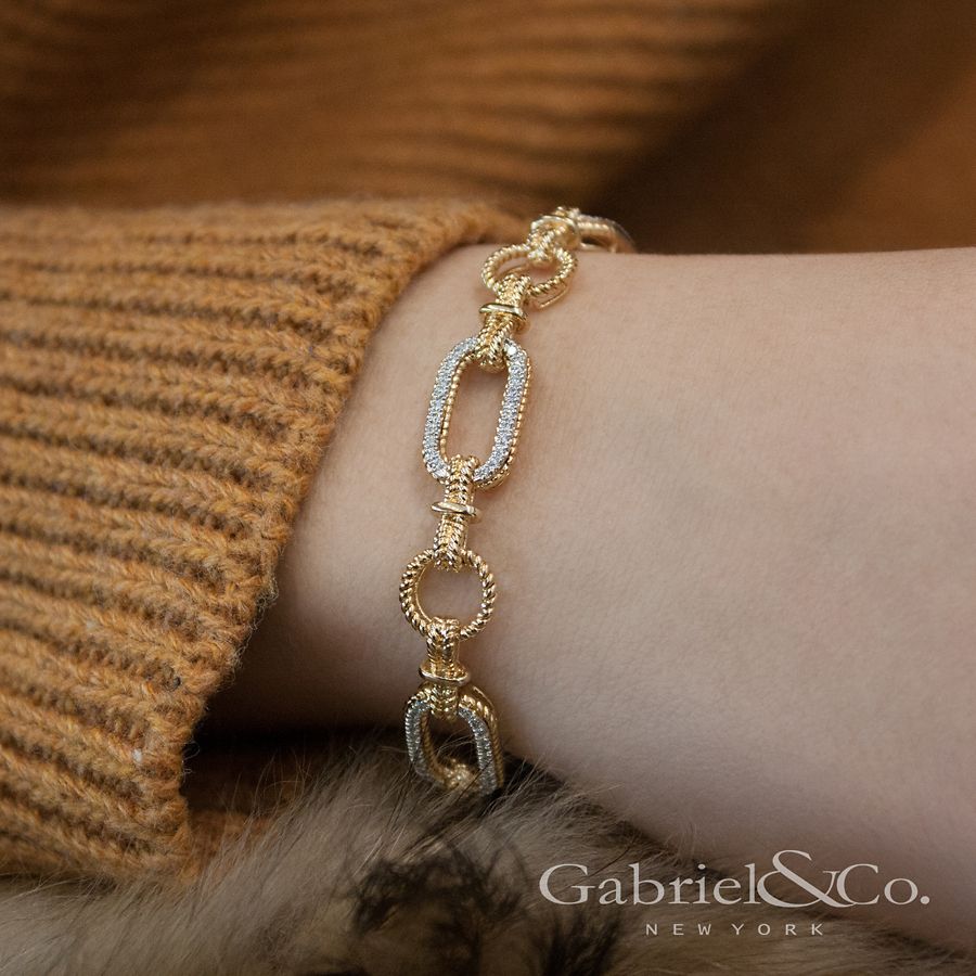 14K Yellow and White Gold Diamond Bracelet with Alternating Links