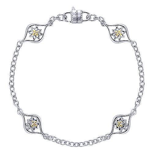 925 Sterling Silver-18K Yellow Gold Chain Bracelet with Filigree Stations