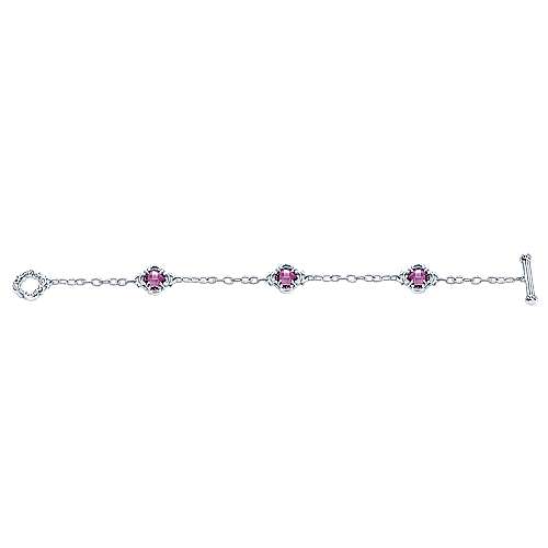 925 Sterling Silver Toggle Bracelet with Amethyst Clover Stations