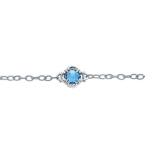 926 Sterling Silver Toggle Bracelet with Blue Topaz Clover Stations