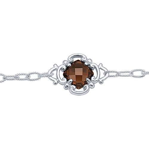 Vintage Inspired 925 Sterling Silver Bracelet with Smoky Quartz Stations