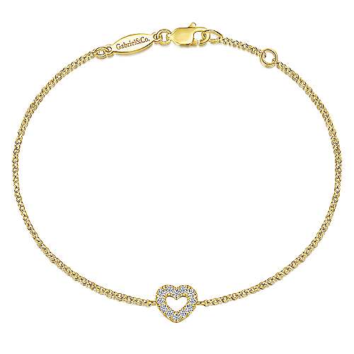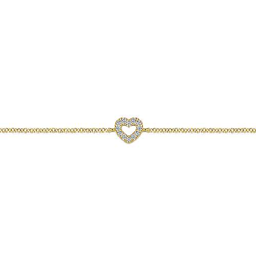 14K Yellow Gold Chain Bracelet with Pavé Diamond Heart